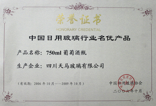 中國日用玻璃行業(yè)名優(yōu)產(chǎn)品-葡萄酒瓶