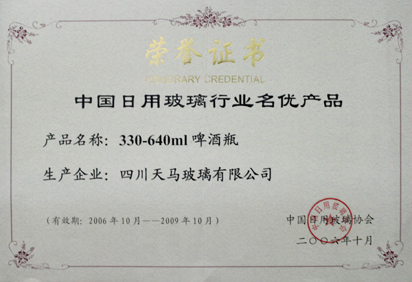 中國日用玻璃行業(yè)名優(yōu)產(chǎn)品-啤酒瓶